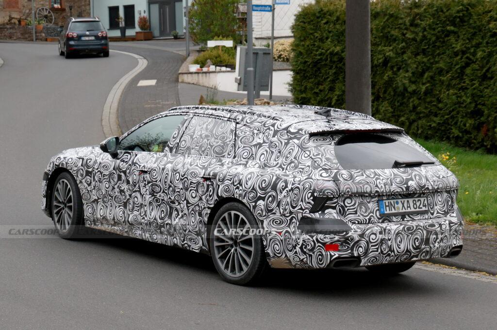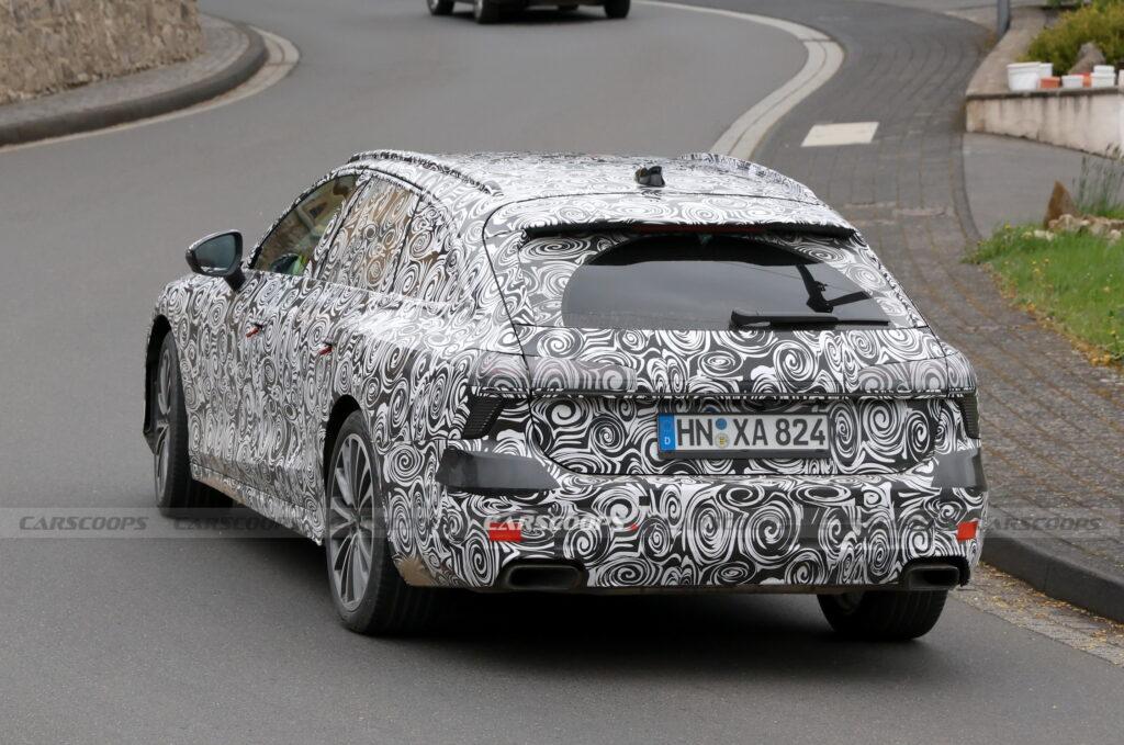 在車身側面,新車大體保持了標志性的奧迪Avant線條,低矮修長流暢的基礎上車頂有了明顯的下墜,D柱傾斜角度進一步增大,顯得更為流線,幾乎近似于溜背轎跑式的風格。車頂有著清晰的行李架,簡潔的腰線加入了半隱藏式車門把手,顯得更加的時尚大氣。大尺寸輪廓當然也不會缺席。車尾部分,則是實車最為個性的角度,首先大尺寸的車頂擾流板引出了傾斜角度極大的后風擋,下方則是獨特的貫穿式尾燈,細長的燈帶在左右兩側加粗變為了多邊形結構,內部有著升格狀的Led光源,并在下方分叉。