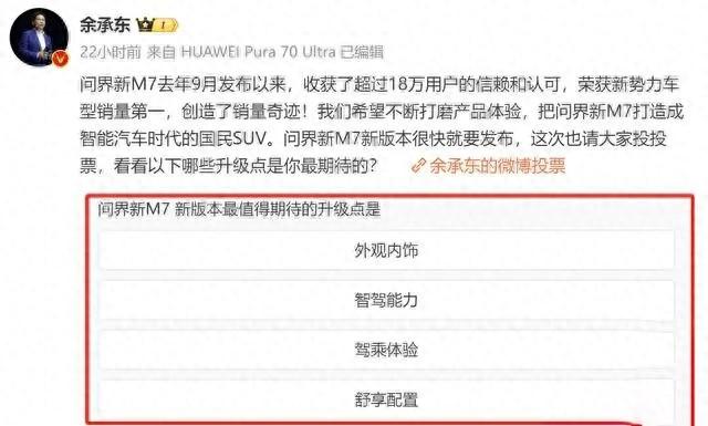 實際上,本次問界M7煥新版屬于新增車型,官方稱之為MAX版本,雖然新階段產品所透露的信息并不多,但根據余承東透露,問界新M7煥新版將針對外觀內飾、智駕能力、駕乘體驗以及舒享配置進行升級,而按照慣例,可以猜測在問界M9上的功能配置、核心技術等也將會下放至這款新車上。