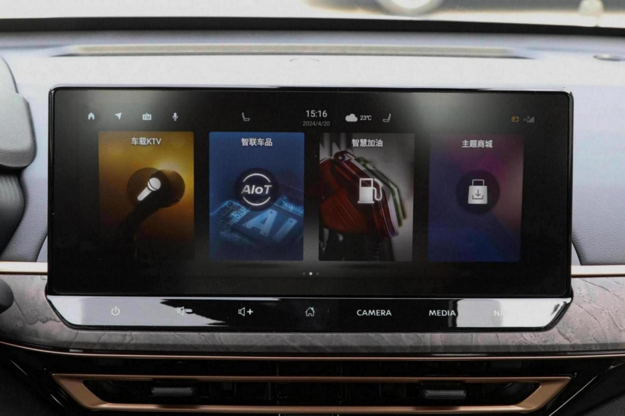 內飾方面,東風日產天籟20周年黑金版延續了簡潔大方的設計風格,金色裝飾條穿插其中,方向盤、中控臺、空調出風口等細節位置都加入了金色飾條裝飾,非常具有質感,并與外觀相呼應。車內7英寸的嵌入式儀表和12.3英寸懸浮式中控屏,搭載了Nissan Connect智能系統,支持藍牙電話、車聯網、語音識別、WIFI熱點和OTA升級等功能。