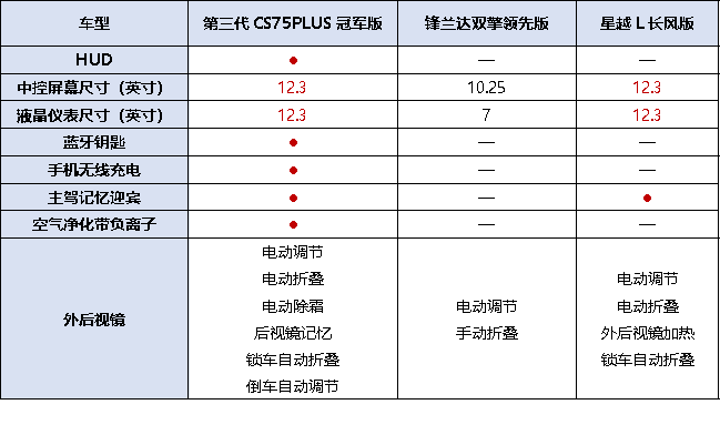 買誰才更值?第三代CS75PLUS冠軍版、星越L、鋒蘭達配置全對比