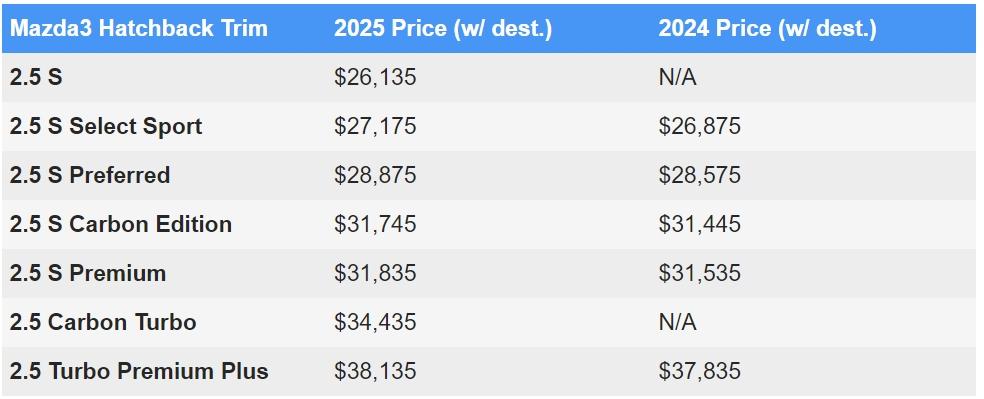 “卷”不單止體現(xiàn)在國內(nèi)汽車市場(chǎng),在外海同樣存在類似的情況。近日,馬自達(dá)發(fā)布了其在北美市場(chǎng)2025款馬自達(dá)3的車型售價(jià),新車依舊會(huì)提供Hatchback兩廂版和Sedan三廂版供選擇,售價(jià)比2024年有所降低。