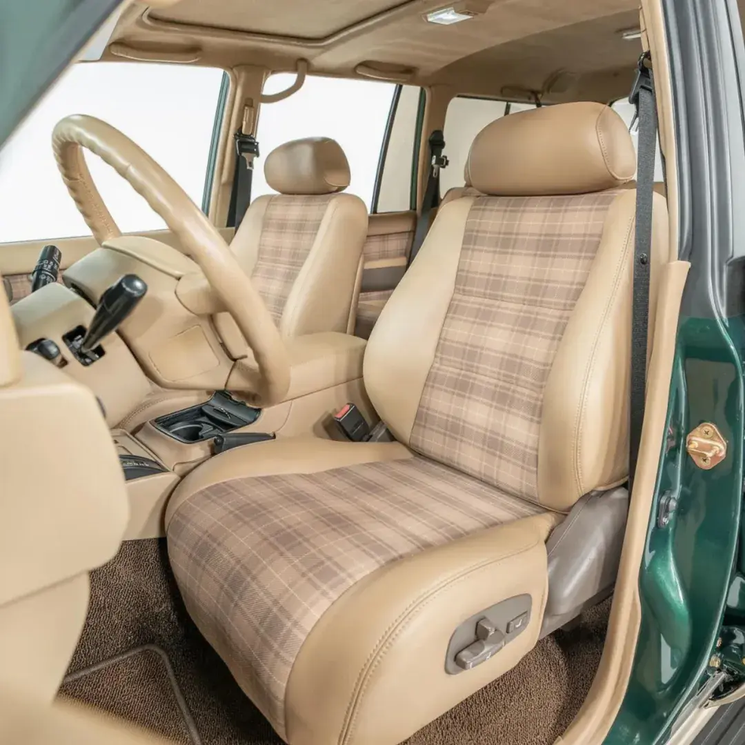 內飾也是全面升級,采用棕色真皮對車內各部位進行重新包裹,座椅中間和門板有格子布相拼,既有居家感,又有復古范。