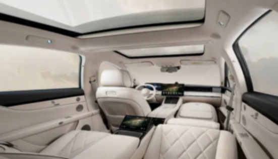 車輛內部配備了三輻式多功能方向盤、大尺寸懸浮式中控屏、全液晶儀表盤,以及頂棚/后窗/后風擋的電動遮陽簾和隱私玻璃等。所有座椅均配備通風、加熱和按摩功能,為后排乘客提供的老板座小桌板和后排扶手冷暖箱增加了便利性和舒適性。此外,四個車窗均采用雙層夾膠隔音玻璃,保證了車內靜謐的環境。享界S9還具備一鍵開啟影院模式的功能,這時投影巨幕會自動下降,配合高清投影幕布,即刻將車廂變身為移動電影院。