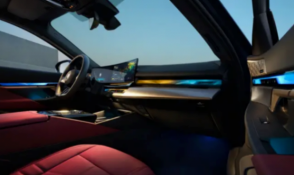 在設計上,全新5系采用了短前懸和長軸距的設計,以及轎跑式車身比例,打破了傳統行政轎車保守的設計風格。車內配備了12.3+14.9英寸的懸浮式曲面雙聯屏,提供了與7系相同款式的8K分辨率31英寸BMW懸浮式巨幕、全景星軌天幕、加長加厚后排座椅等10項專屬于中國市場的配置。
