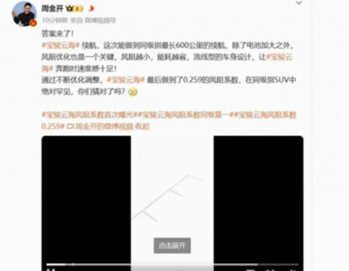 上汽通用五菱品牌事業(yè)部副總經(jīng)理周钘在社交媒體上透露,寶駿云海的低風(fēng)阻系數(shù)僅為0.259Cd,這一數(shù)據(jù)表明了新車(chē)在空氣動(dòng)力學(xué)方面的卓越表現(xiàn)。寶駿云海是一款定位緊湊型SUV的車(chē)型,基于天輿架構(gòu)D平臺(tái)打造,并計(jì)劃于2024年第三季度正式上市。