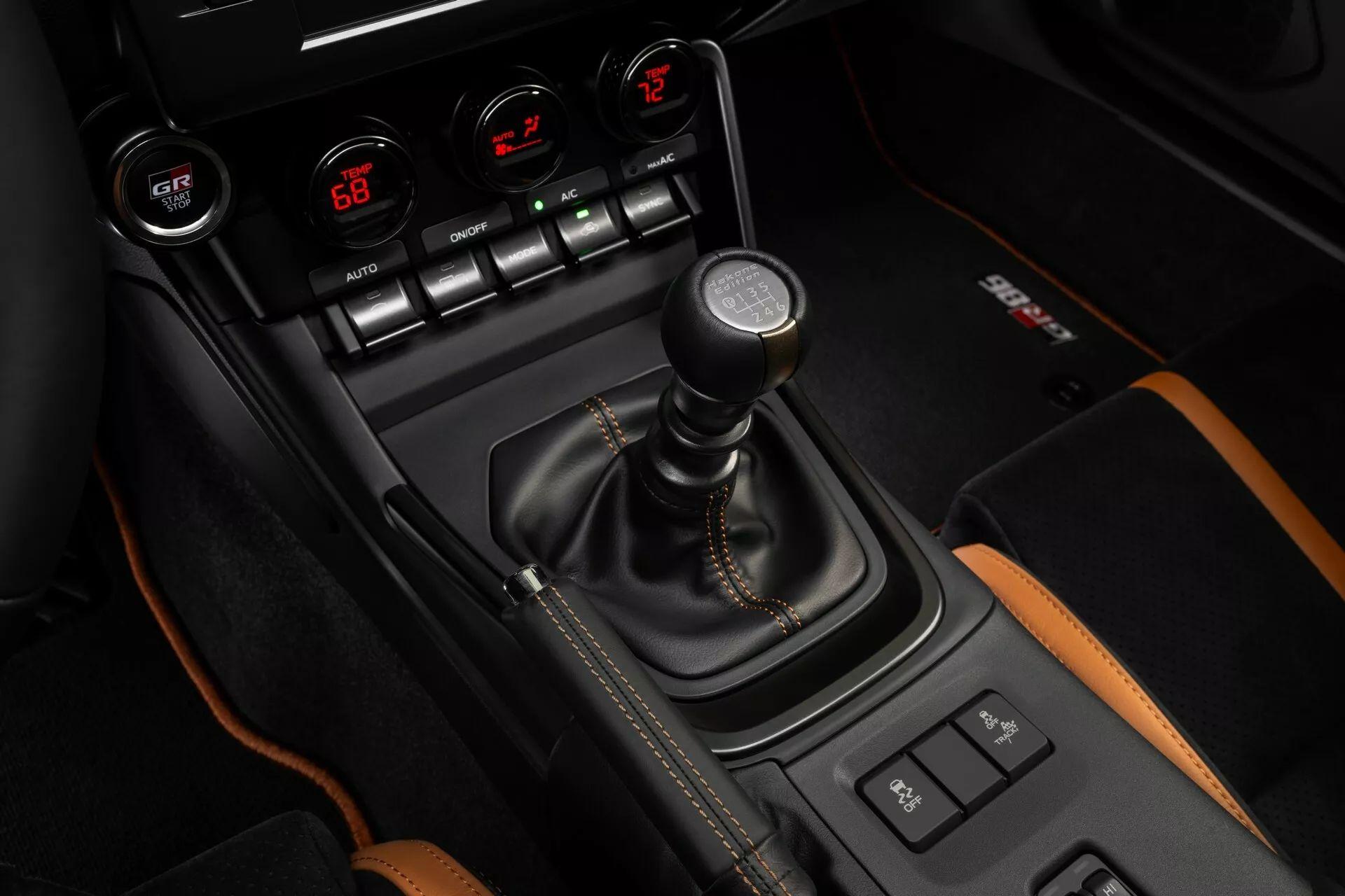 2025款GR86的內(nèi)部依舊采用較為簡約的設(shè)計風(fēng)格,轉(zhuǎn)速表位于中央且可以顯示G值及多項行車數(shù)據(jù)的數(shù)字儀表搭配帶有“GR”徽標(biāo)的運(yùn)動型多功能方向盤營造出較強(qiáng)的駕駛氛圍。此外,兩款特別版車型不僅采用專屬的棕褐色配色風(fēng)格,還換裝了全新的擋把且?guī)в袑巽懪疲蔑@其特別版車型身份。