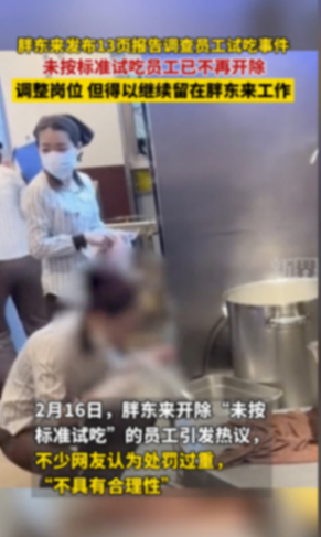 在經(jīng)過充分討論和審議后,最終決定如下:涉事員工將降級(jí)并轉(zhuǎn)崗,學(xué)習(xí)期為三個(gè)月,調(diào)離原崗位,改為非食品加工崗位;相關(guān)主管也將降一級(jí),學(xué)習(xí)期為三個(gè)月;同時(shí),火鍋檔口將被關(guān)閉。