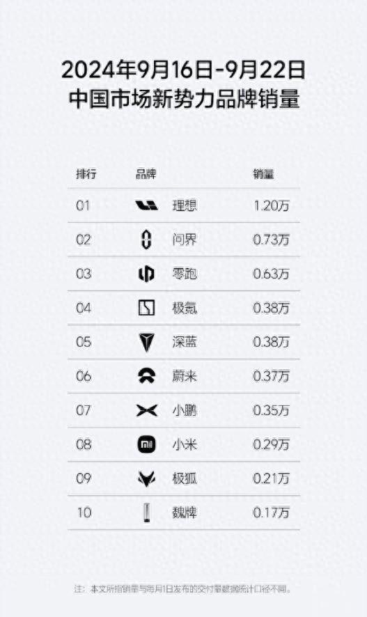 問(wèn)界和零跑分列二三位,這屬于正常發(fā)揮。在這之后,極氪、深藍(lán)和蔚來(lái)的銷(xiāo)量極為接近,分別是0.38萬(wàn)、0.38萬(wàn)和0.37萬(wàn)。甚至在這之后的小鵬,也有0.35萬(wàn)輛的成績(jī)。