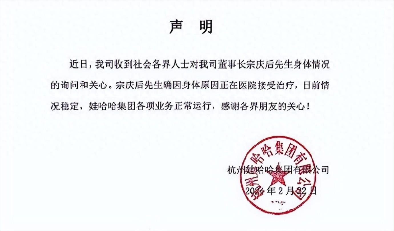 22日,有媒體報道稱,娃哈哈創(chuàng)始人宗慶后目前在浙江大學醫(yī)學院附屬邵逸夫醫(yī)院ICU病房救治,引起公眾廣泛關注。對此記者聯(lián)系娃哈哈公關部相關負責人,對方表示目前情況穩(wěn)定,感謝社會各界關心。