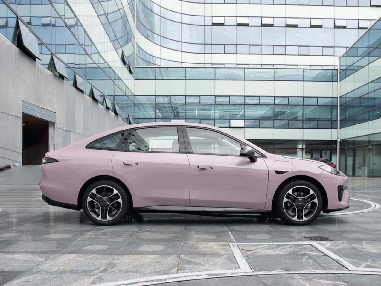 車側(cè)的線條同樣優(yōu)美,乍一看有點轎跑的味道。細節(jié)方面,黑色的B柱和后視鏡設(shè)計,時尚感同樣有所保留。當然,隱藏式門把手自然不會缺席,并且輪圈樣式也頗為獨特。