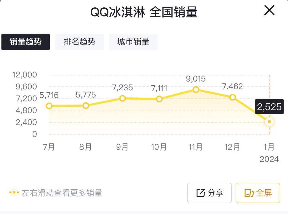 如果從2023年1月份開始算,那么2024年1月份,QQ冰淇淋可以說是創(chuàng)造了“銷量新低”。所以,這個銷量成績,難免不讓人感到詫異。