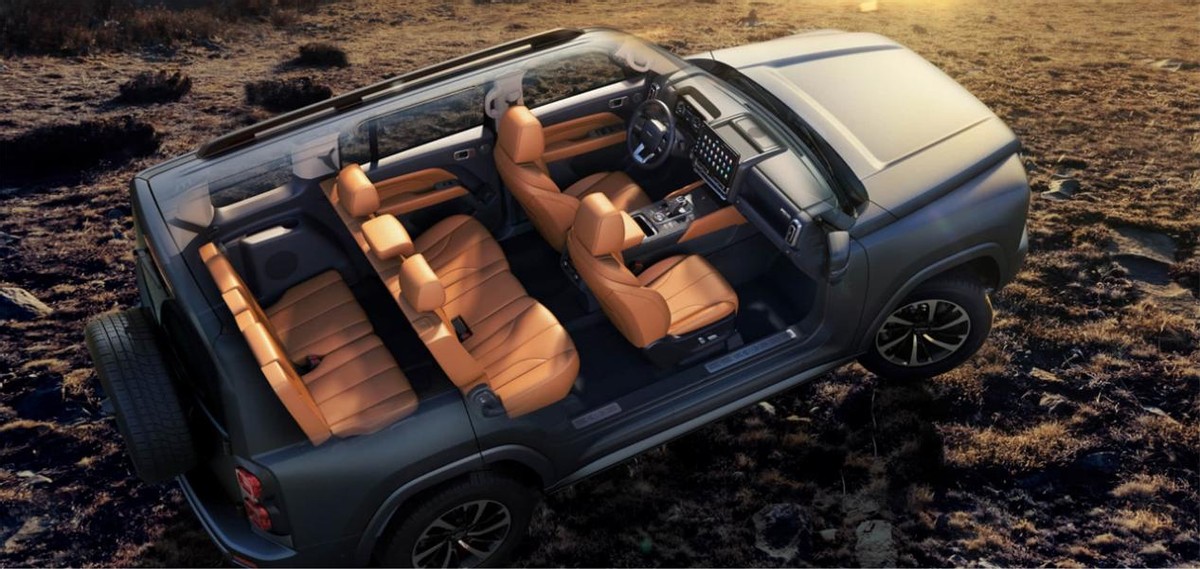 空間舒適方面,5米左右的車長(zhǎng),接近2米的車寬和車高,以及2850毫米的軸距,為寬綽的艙內(nèi)空間提供了先天條件。五座版二排可以純平放倒,七座版也接近純平,無論是城市出行還是越野露營,都能提供多場(chǎng)景的便利性。