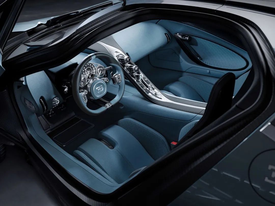 外觀設計上,Tourbillon秉承了布加迪的經典美學,馬蹄狀前格柵與雙側大尺寸散熱口相得益彰,大燈組則呈現出獨特的“L”形設計。更令人矚目的是其夸張的向上開啟蝴蝶門,完美詮釋了布加迪頂級跑車的身份。車身尺寸方面,新車長為4671mm、寬2165mm、高1189mm,軸距達2740mm,而車身重量卻僅為1995公斤,骨架重量更是僅為Chiron的45%,輕盈且堅固。