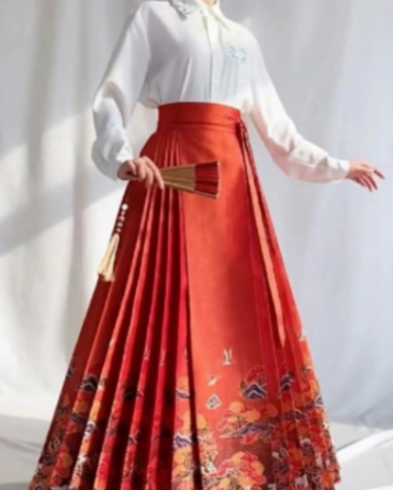 馬面裙,這款古風(fēng)服飾的璀璨瑰寶,無(wú)疑是漢服中的翹楚。自宋朝誕生以來(lái),于明清的輝煌中綻放,它以獨(dú)特的魅力,成為歷史的見(jiàn)證者。馬面裙的設(shè)計(jì)巧奪天工,前后四個(gè)裙門宛如駿馬的飛馳,兩兩相合,若合符節(jié)。褶皺的側(cè)面,則如風(fēng)中的流云,自由而靈動(dòng)。腰間繩或紐的固結(jié),則如詩(shī)人的筆觸,細(xì)膩而有力。