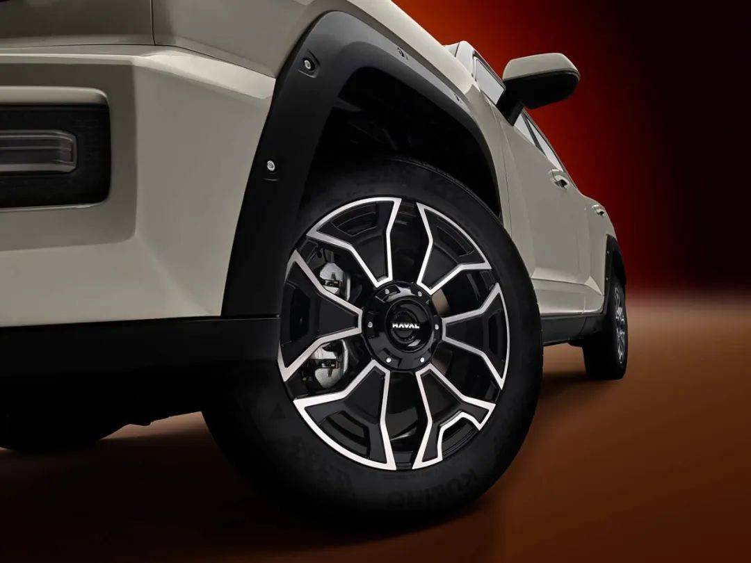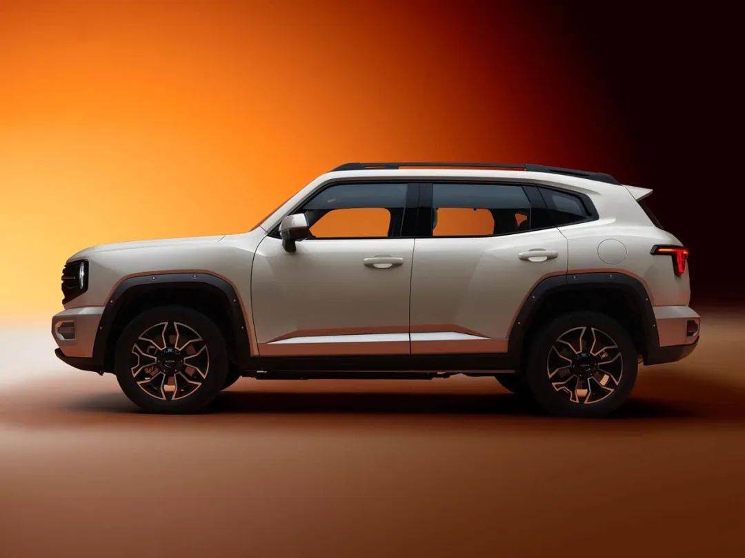 車身側面線條肌肉感十足,離地間隙較高,展現出良好的通過性能。細節方面,新車配備了黑色輪眉,并采用外露式鉚釘進行點綴,進一步強化了其越野風格。腰線豐富且富有力量感,配合趨于平直的車頂線條,不僅提升了整車的視覺張力,也為車內乘客提供了更充裕的頭部空間。