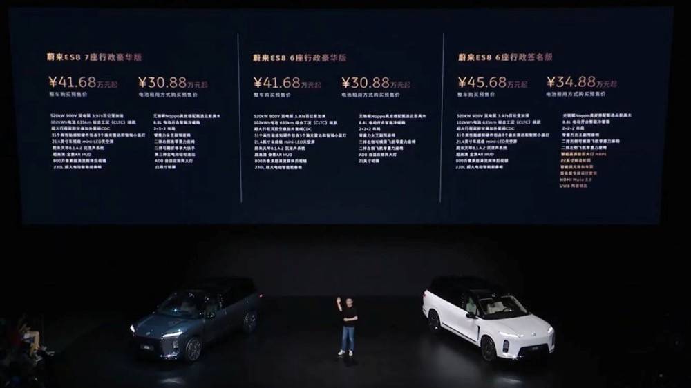 它們同問界M8純電版一樣,都在價格上做出了新的思考。比如,前不久發布的理想i8,在砍配置調價前,32.18萬元的起售價與理想L8相同,雖然它們并非是同一款車的不同版本。整車預售價41.68萬元起的蔚來ES8,從第二代的50萬元級售價,回到40萬元級,租電方案更是來到了30萬元出頭。