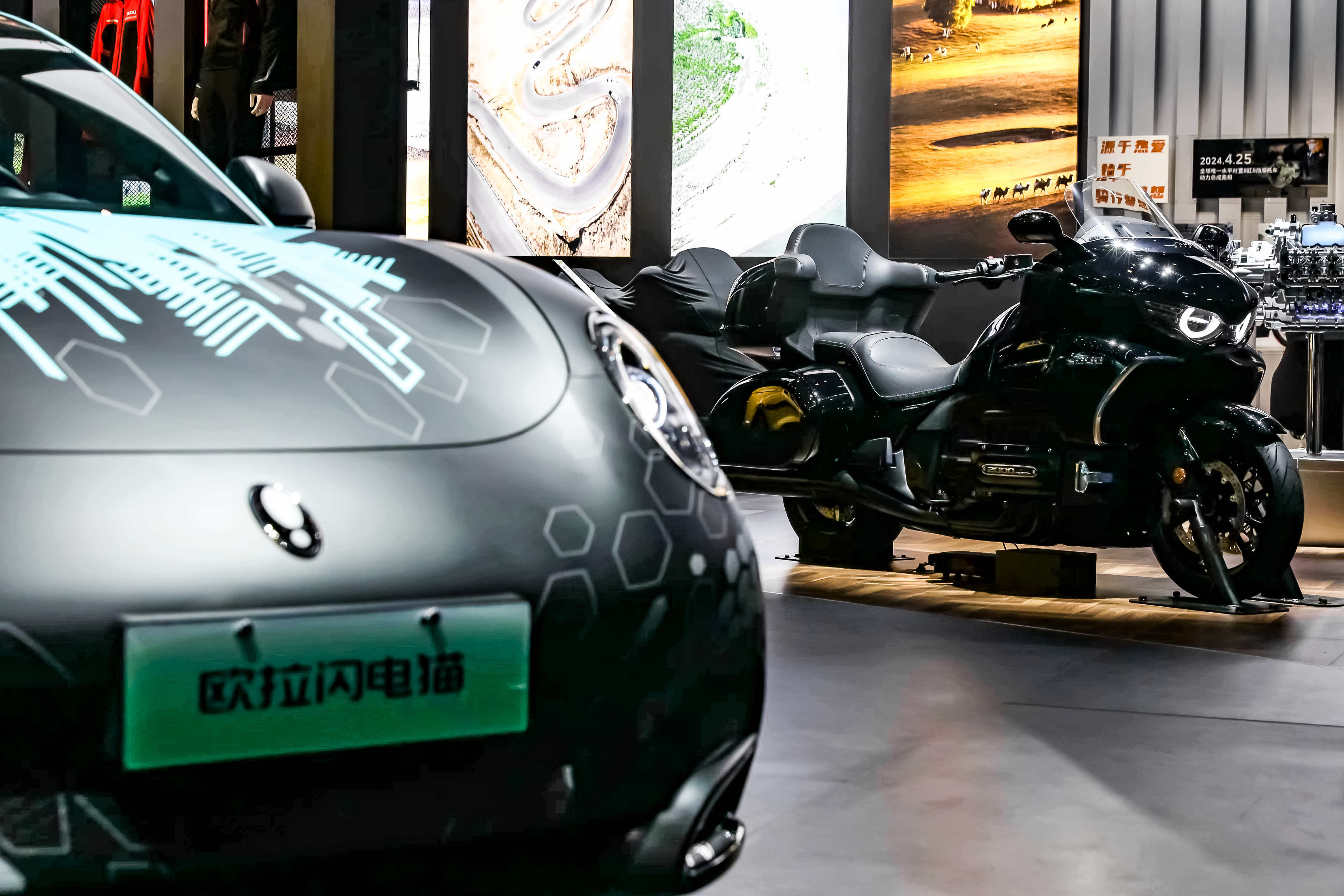 則以“優(yōu)雅國風”姿態(tài)成為展臺焦點,經(jīng)典的轎跑輪廓搭配國風元素裝飾,與旁邊的越野車形成“剛柔并濟”的視覺反差。這款車型深度洞察女性用戶對美學與實用性的雙重需求,車身色彩選用低飽和度的莫蘭迪色系,內(nèi)飾細節(jié)融入刺繡、木紋等國風元素,營造出雅致氛圍。在功能上,芭蕾貓搭載專屬女性的駕駛模式,方向盤轉向力度更輕盈,油門響應更平緩,同時配備座椅加熱、香氛系統(tǒng)等舒適配置,讓城市出行成為一種享受。此次展臺上,芭蕾貓的國風改裝案例,更是用戶與品牌共創(chuàng)的典范,讓經(jīng)典車型在個性化表達中煥發(fā)新活力。