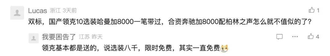 比如前文提到的領克加裝音響所需要的8000塊,其實說是限時免費,但一直都會送。