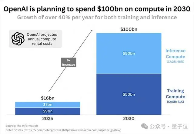 就從今年的數據來看,花的160億美元中,計算成本為90億元,推理成本70億美元,到了2030年,這兩項投入都將接近500億美元。