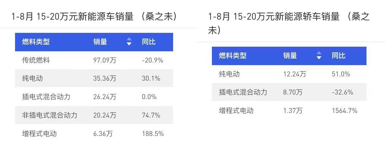 另外考慮到15-20萬之間的增程新能源市場不錯的增長勢頭(1-8月累計銷售6.4萬輛,同比增漲189%,數據源于李顏偉),至境L7基本是處在一個上行的市場,可以充分借勢占領一個合資增程轎車的先機。