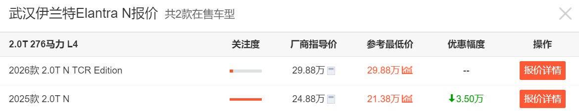 不過,現(xiàn)實往往是殘酷的,在伊蘭特N上市一年多之后,這車目前在終端部分地區(qū)居然出現(xiàn)了3.5萬的優(yōu)惠幅度,這是我所沒有想到的。那花21萬多的價格就能買現(xiàn)代伊蘭特N,性能黨們這回還不下手?
