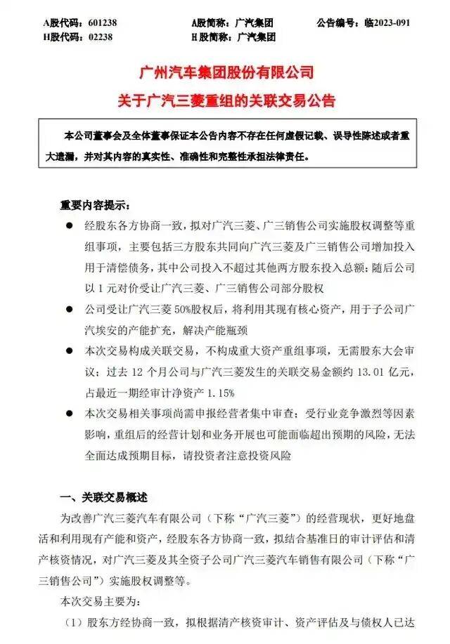 兩年前,廣汽集團發(fā)布了一則公告,引來外界無盡唏噓。公告表示,以1元對價受讓三菱在廣汽三菱50%股權,股東三方將增資清償債務,三菱汽車和三菱商事退出廣汽三菱。至此,廣汽三菱成為廣汽集團的全資子公司。