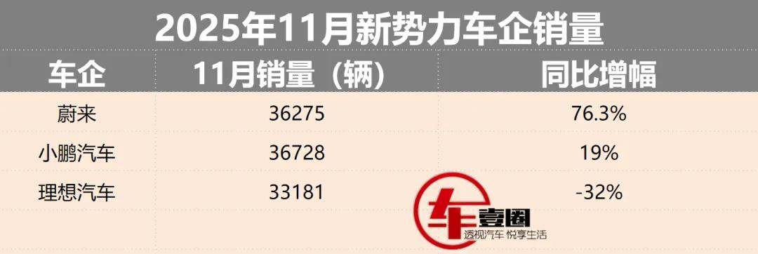 11月銷量:“蔚小理”重回起跑線,今年誰能笑到最后?