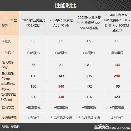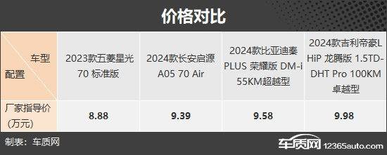 此次推薦的四款車型分別是五菱星光、長安啟源A05、比亞迪秦PLUS榮耀版 DM-i和吉利帝豪L HiP龍騰版。其中,比亞迪秦PLUS DM-i是國內插電混動市場的明星車型,位居銷量排行榜前列。剛剛上市的比亞迪秦PLUS榮耀版 DM-i價格門檻進一步下探,讓綜合競爭力得到明顯提升。五菱星光、長安啟源A05和吉利帝豪L HiP龍騰版都是插電混動市場的挑戰者,希望從火爆的新能源市場分走更多份額。車型選擇方面,四款車型的廠商指導價均低于10萬元,五菱星光是入門級車型,長安啟源A05、比亞迪秦PLUS榮耀版 DM-i和吉利帝豪L HiP龍騰版都是次低配車型。