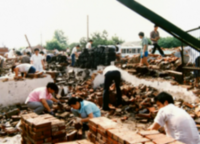 【1990年,江汽員工自發頂著烈日清理磚塊再利用】