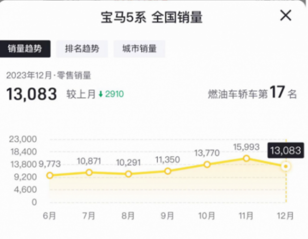 比如寶馬5系,去年全年上險(xiǎn)量仍達(dá)到14.3萬(wàn)輛,臨近換代時(shí),月銷量依然穩(wěn)穩(wěn)破萬(wàn)。